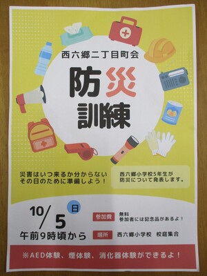 その一環として、10月5日(日曜)の防災訓練(西六郷二丁目町会主催)に5年生の有志が参加し、地域の方に向けて、防災に関するプレゼンテーションを行います。