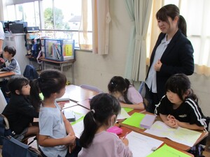 2年生がグループでお店や施設に行き、インタビューをしてきました。まちたんけんを通して、気付いたことを友達や家族や1年生へと伝えることで、地域への愛着をさらに深めていきます。