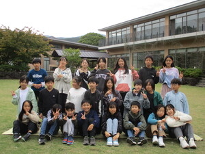 全員参加できました。六郷小と一緒にバスで伊豆高原学園に向かいます。