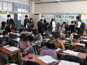 画像は2年2組と3年2組の様子です。