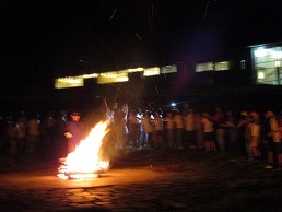 直前まで雨が降っていましたが、キャンプファイアーの開始時刻には止んで、実施することができました。
