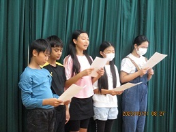 調べてきたことをもとに、自分たちの思いを全校に伝えました。