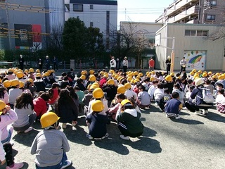今回は、予告なしでの避難訓練で休み時間に地震が起きたときを設定でした。