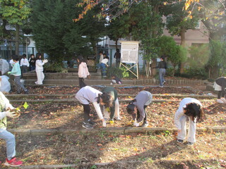 低学年は学校の敷地内を、高学年は地域の公園を、地域の方と一緒に掃除しました。