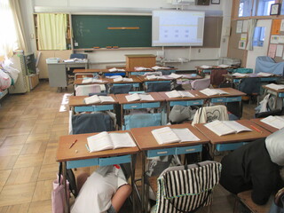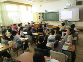 5時間目、多くの先生方に囲まれる中、各クラス授業が行われました。緊張していた児童が多かったと思いますが、自分の考えを発表したり、先生や友達の話を聞いたりなど、とても真剣に授業に参加していました。
