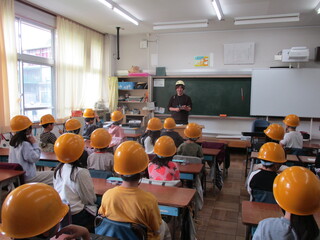 教室でも、担任の先生の話をしっかりと聞き、避難訓練の振り返りをしていました。