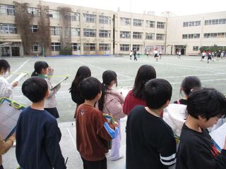 3日(火曜)に、3年3組と5年3組のたてわり班活動が行われました。ドッチボールや鬼ごっこをして、楽しく遊びました。5年生が3年生をしっかりと引っ張っていってくれました。