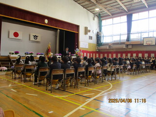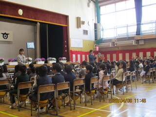 本日、66名の1年生を迎え、入学式を挙行しました。新しい友達や先生に少し緊張気味でしたが、PTA会長の挨拶から表情が柔らかくなってきました。また、小学校生活頑張るぞ!という気持ちが一人一人から伝わってきました。