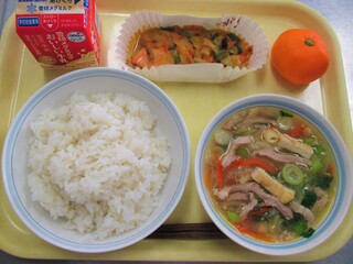 大田区では1月24日~2月6日を大田区学校給食週間としています。1月に引き続き、期間中は昔ながらの料理など日本の食文化にふれ、味わう給食を取り入れています。
