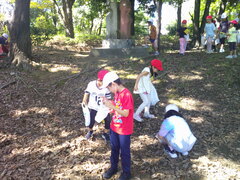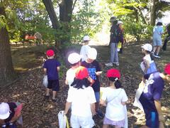 9月25日に1・2年生で平和の森公園へ生活科見学へ行きました。1・2年生でグループを作り、どんぐりや色づいた葉を拾いながら、秋探しビンゴゲームをして、楽しく過ごしました・