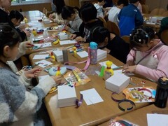 大森の伝統工芸品である「大森麦わら細工」の歴史や種類、特徴について大田区郷土博物館の方々に教えていただきました。貼り細工の体験活動も行い、素敵な作品を作りました。