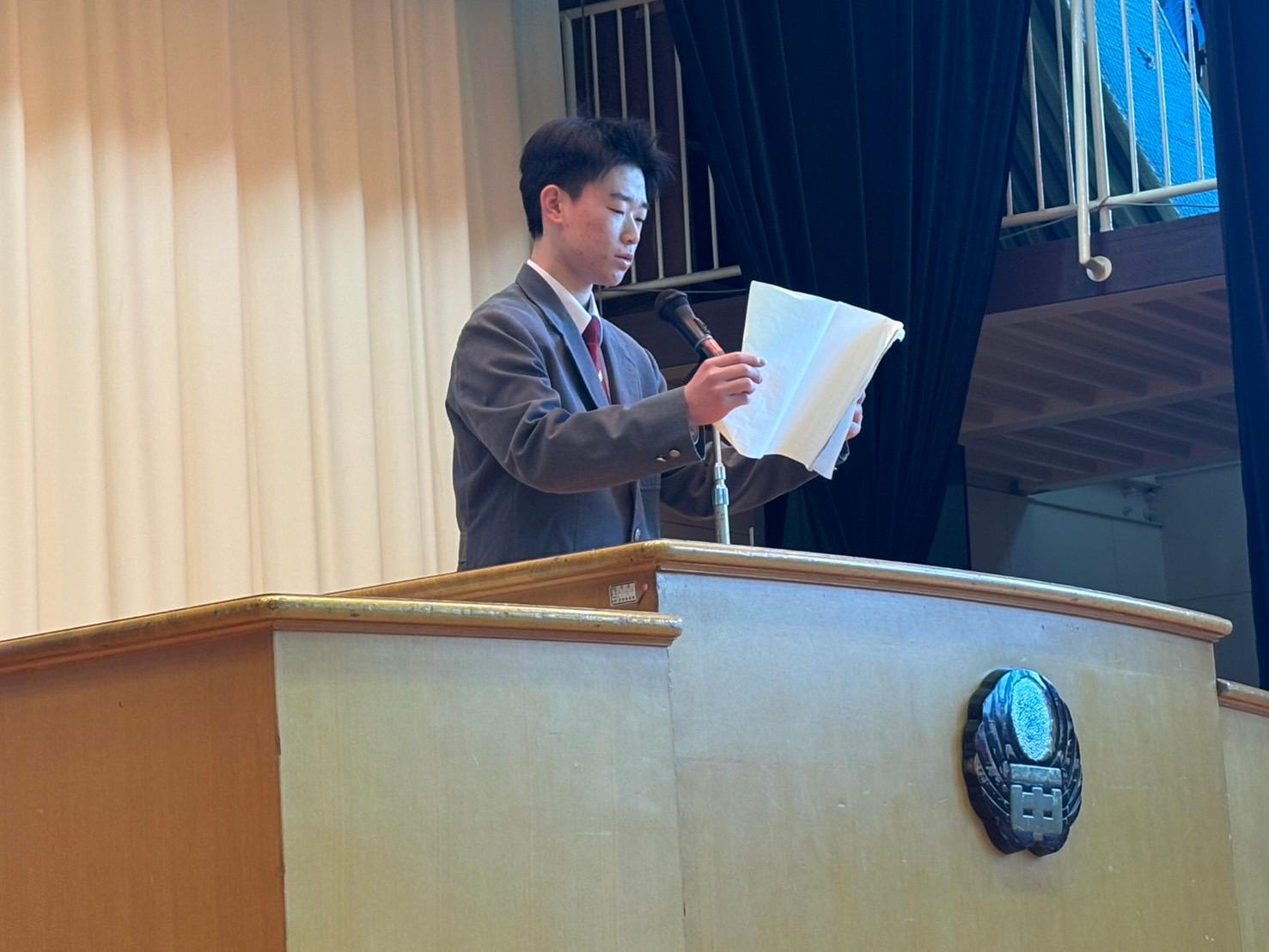 本日は、社会を明るくする運動の取組のなかで、東京都保護観察所長賞を受賞した生徒の作文を読んでもらいました。