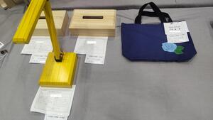 1年生の作品(ティッシュBOX)2年生の作品(ミニトートバッグ、LEDライト)