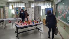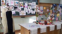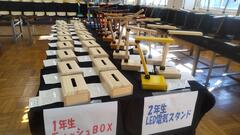 本日は土曜授業日(公開)と展示会です。あわせて、新入生の標準服採寸会を開いています。展示会は16時までです。4階の被服室には、家庭科の作品とハンドメイド部の作品と英語部の発表があります。1階の金工室には、技術科の作品があります多くの保護者の方にご来校いただいています。ありがとうございます。