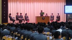 本日1校時に、全校生徒が体育館に集まり全校道徳を実施しました。3年生は、「後輩に伝えたいこと」をテーマに事前に作文を書き、学年代表の8名がスピーチをしました。体験に基づく話が多く、気持ちのこもった話し方で話す側も聞く側も真剣に臨んでいました。1中の伝統がしっかりと受け継がれたと思います。準備をしてくれた3年生、どうもありがとう