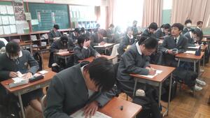 本日、6時間目に「学習コンテスト」を全校で実施しました。1年生と3年生は「漢字の書き取り」、2年生は「英語スペリング」です。直前まで見直したり、指で空中に文字を書いて確認したりと、真剣です。頑張った成果が出せていることを願います。