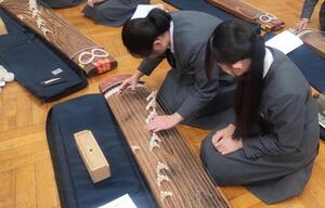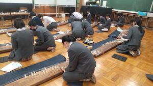 今、音楽では「お箏」に取り組んでます。2年生は、「さくらさくら」を3人で弾くアンサンブルに挑戦しています。もうすぐお正月ですね。日本らしい雰囲気をしっかりと味わってください。