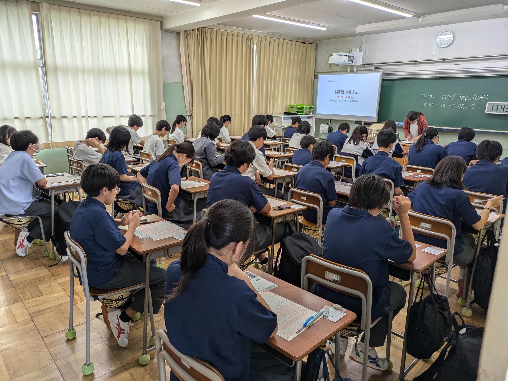 本日、英検試験を実施しました。5級から準2級プラスを本校で行いました。緊張感のなか、頑張って受けていました。写真は、事前説明とマークシート記入の様子になります。