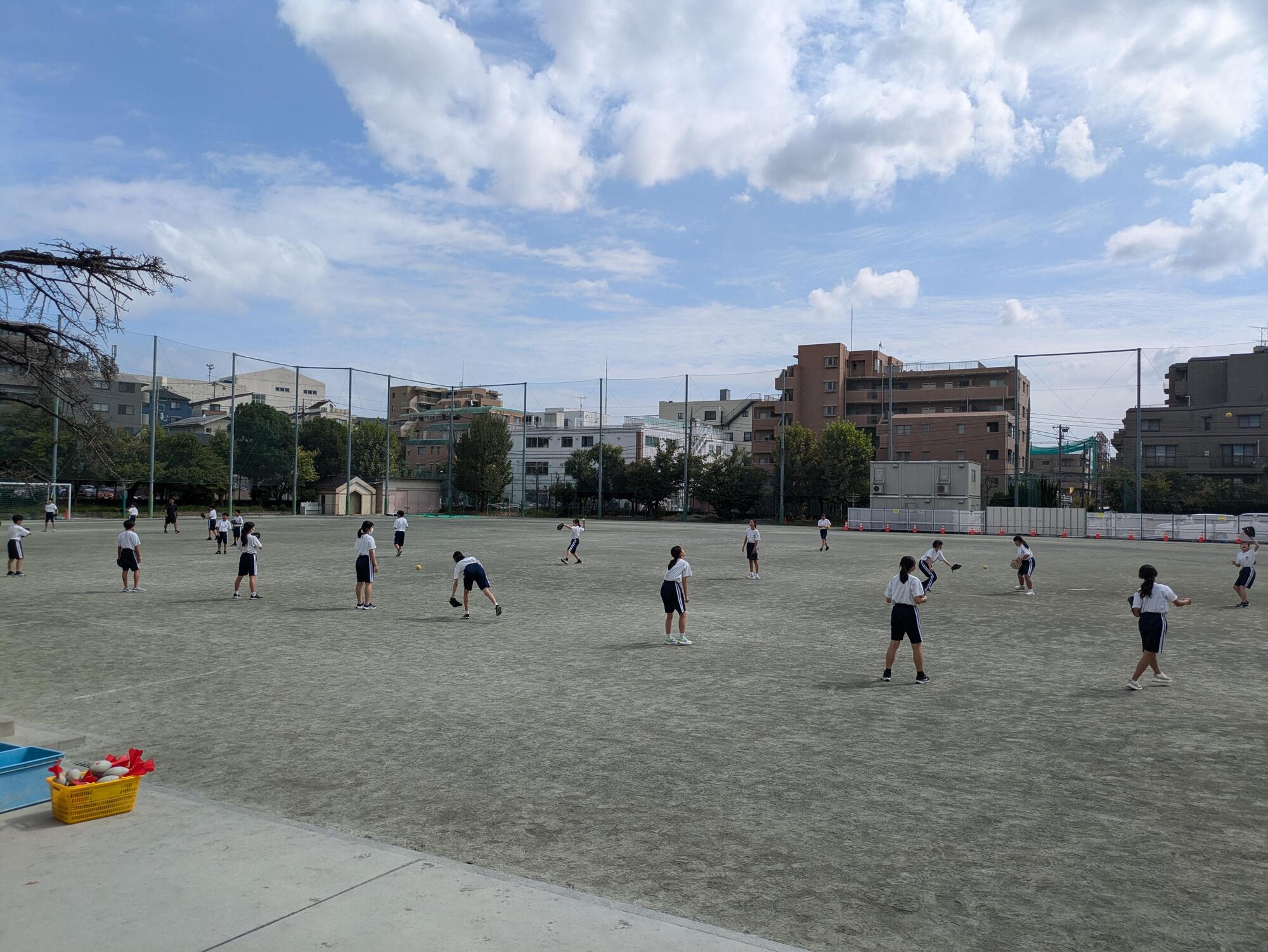 ソフトボールの授業内容になります。比較的、ボールを遠くに投げることができる生徒が多いです。フォームがきれいな生徒もいました。ペアで楽しそうにキャッチボールをしていました。