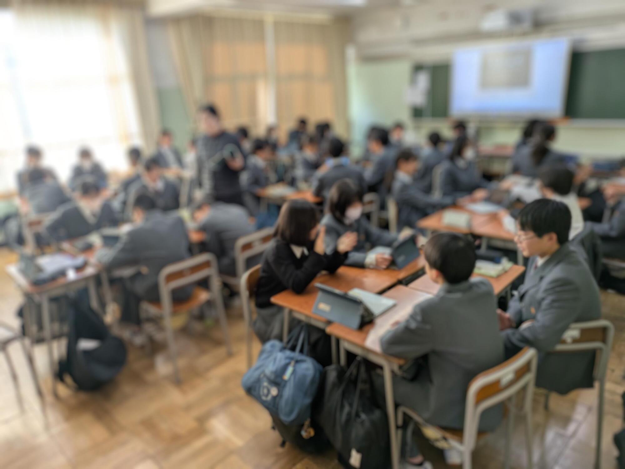 話題や展開を捉えながら、グループで「なぜ勉強するのか?」を話し合います。相手の意見を聞きつつ、自分の意見を言い、さらに相手の考えに質問し、共に答えを考えていきました。