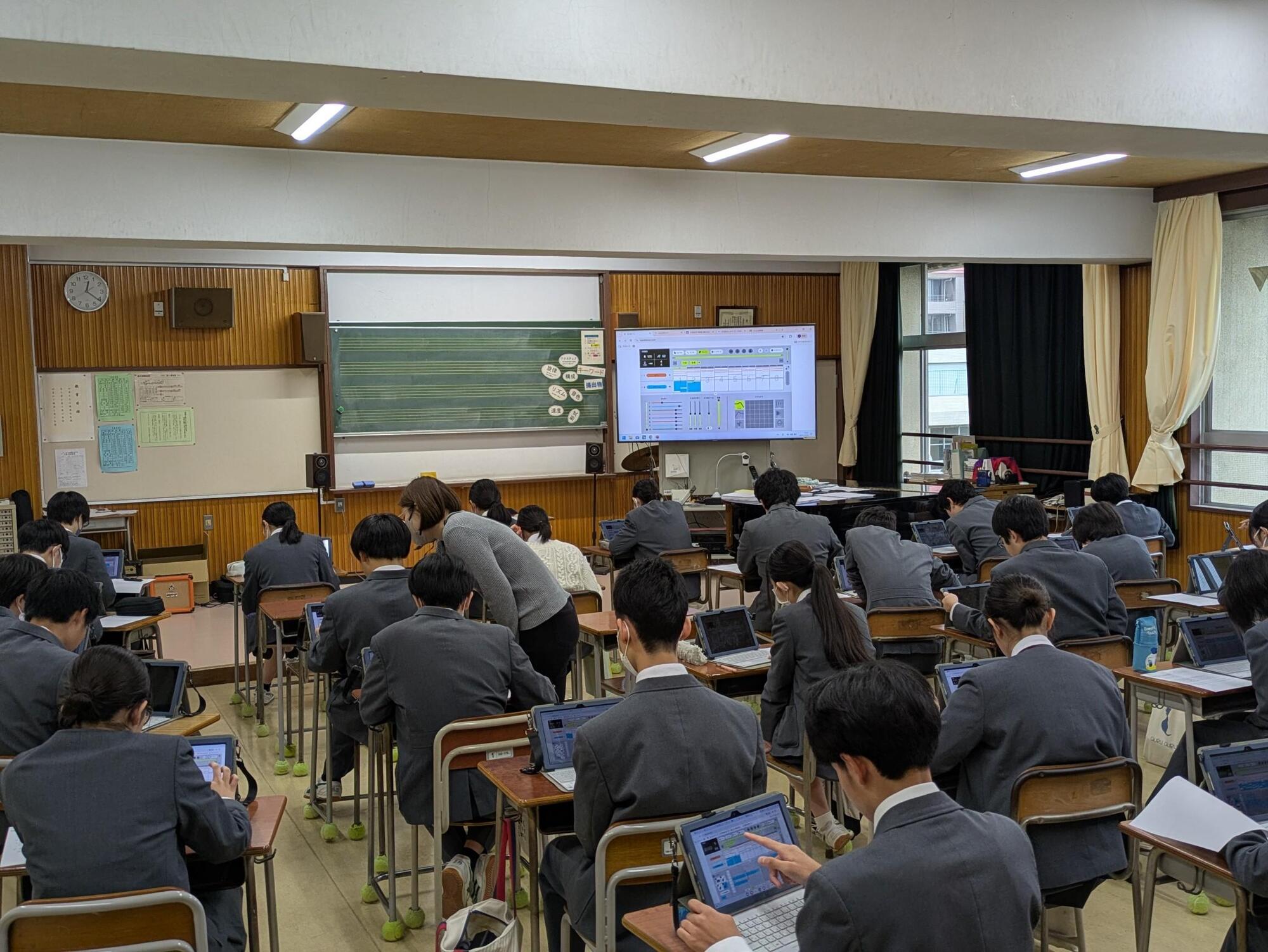 「カトカトーン」(音楽制作アプリ)を使用し、音楽を製作していきます。生徒は制作を楽しんでいました。苦手な生徒には、教員が個別に対応しています。