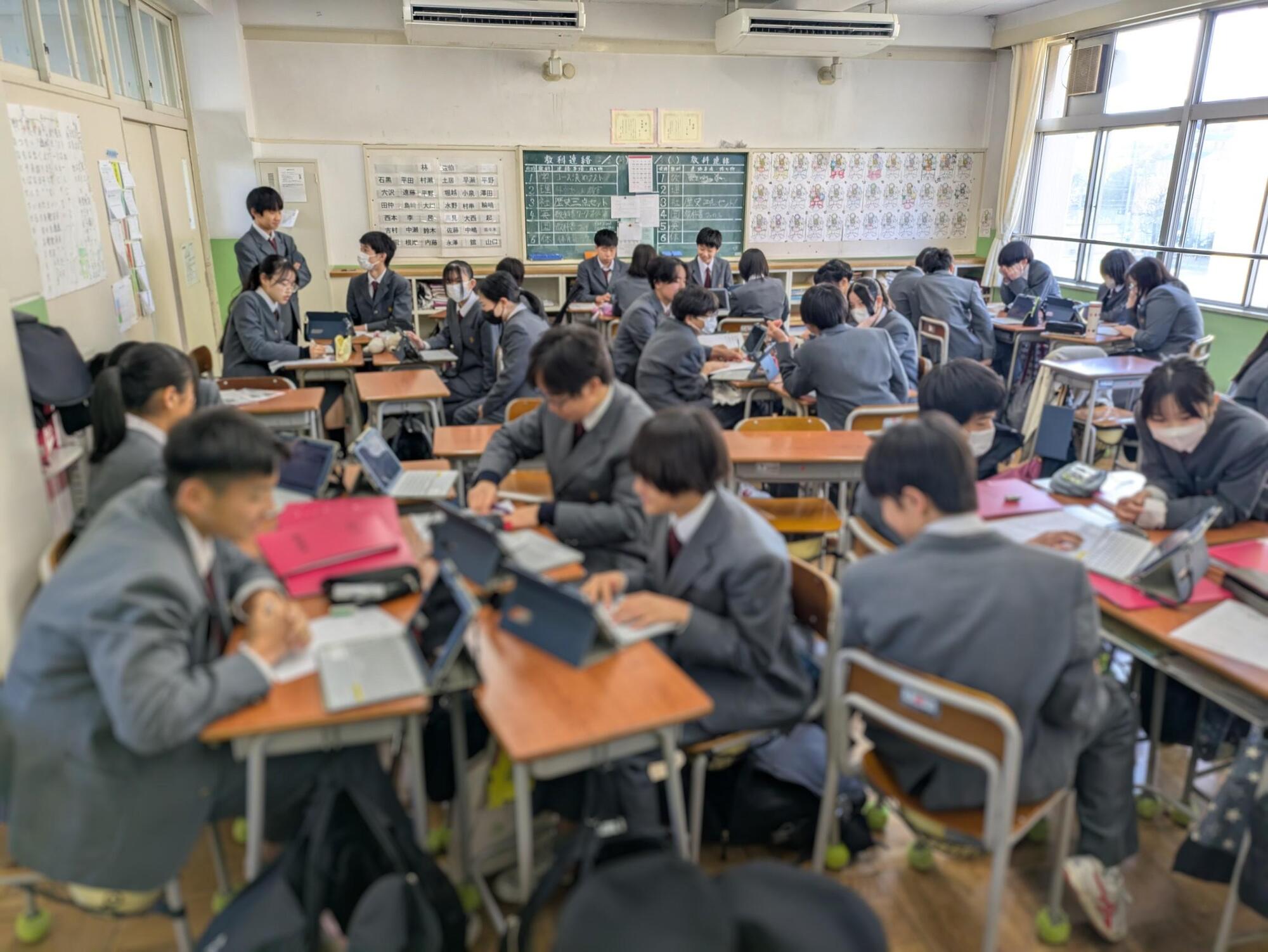 社会科見学に向けて事前学習をしています。2年生は、タブレットを活用し、ルートの確認などを行っています。