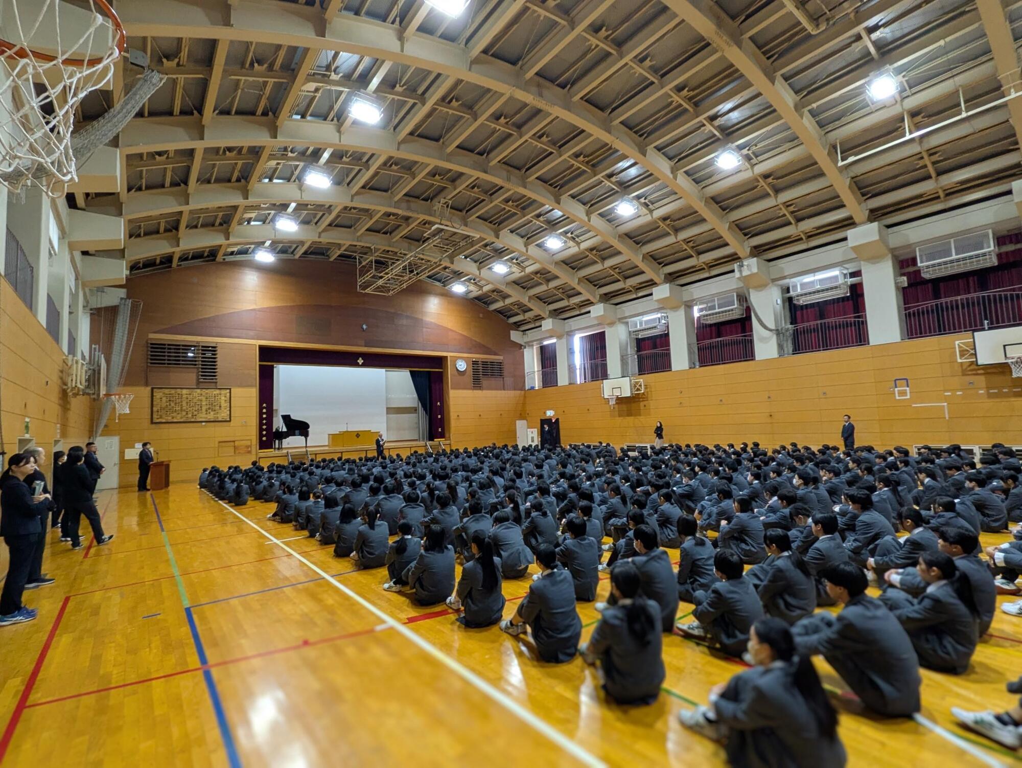 三学期始業式を行いました。今日から、校歌斉唱のとき、2年生が指揮と伴奏をおこないます。三学期は、次のステージのスタートでもあります。