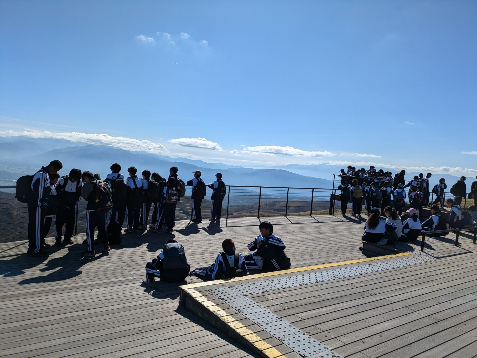 車山山頂に到着!絶景でした!生徒たちは座って疲れを癒していました。