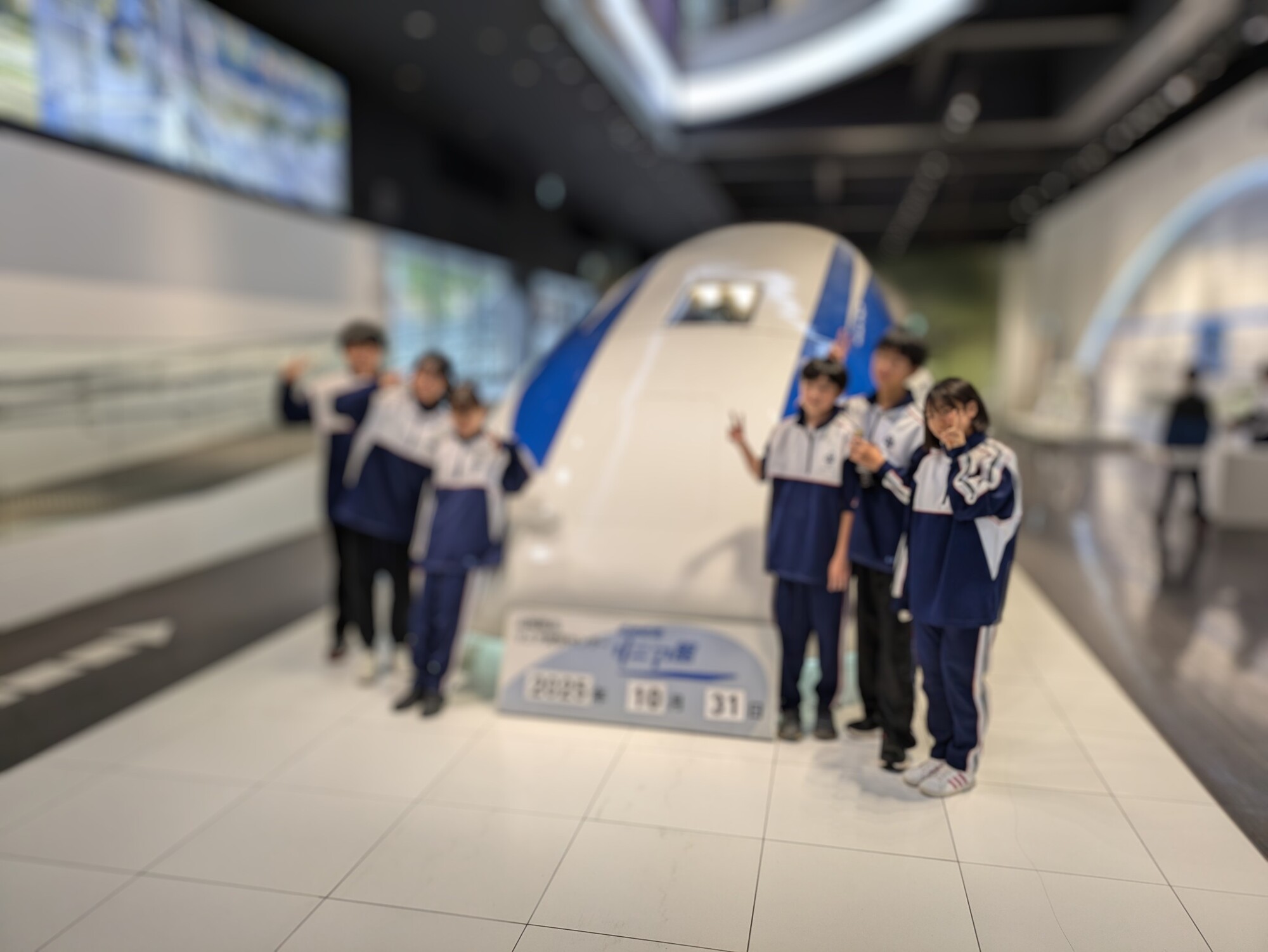 山梨県立リニア見学センターを訪れました。リニアモーターカーがセンターを通過したときの速さに驚いていました。