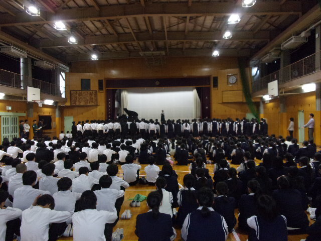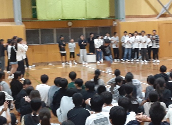 9月の朝礼で、夏休みの部活動の表彰がありました。この日はバスケットボール男女と吹奏楽部が表彰されました。