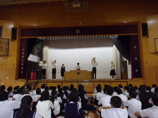 10月30日の合唱コンクール(於、アプリコ大ホール)が近づいてきました。今日は当日の演奏順を決めるくじ引きを行いました。
