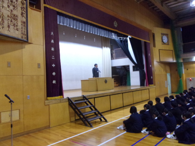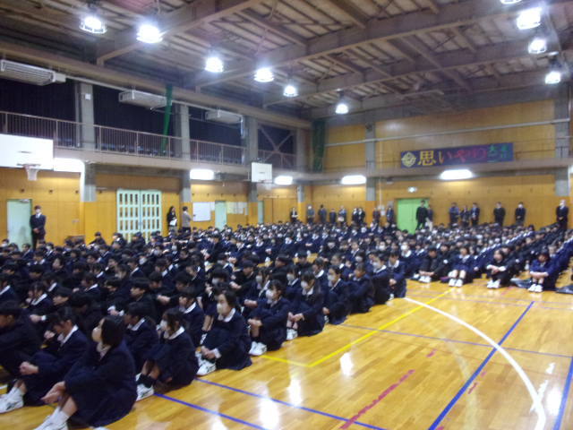 その後始業式をはさんで、お待ちかねの担任発表がありました。学校によっては、この発表がとても盛り上がる(?)ところもあるのですが、本校のばあい、生徒の反応はとっても控え目。この行儀のよさこそが二中の伝統でありよさなのでしょう。