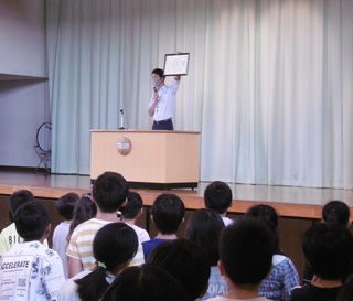最後に、夏休みの終わりにPTAの皆様の御尽力で開催される「大三まつり」について、ルールを守って楽しもうという呼び掛けをしました。