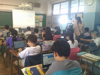 今日の学習では、そのことについて確認した後、「どのようにして避難を成功させたのか。」「どのような人たちが避難に関わったのか。」について考え、タブレット端末で共有しました。