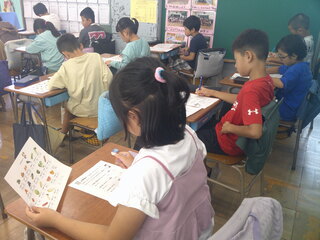総合的な学習の時間の「からだ元気大作戦!!」で健康について学習している3年生。