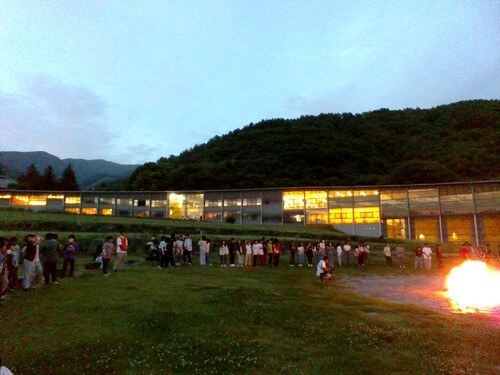 キャンプファイヤーでは、東糀谷小学校の6年生とダンスやゲームを楽しみました。