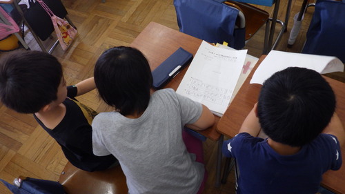 夏休みまで1か月を切り、雨の日と日差しの強い日が交互に訪れる中、5時間目も頑張っています、1年生。