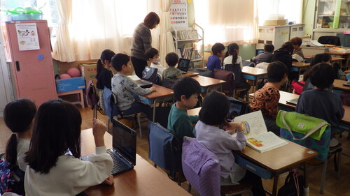 国語の時間に、大三しょうてんがいの開店準備をしました。