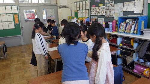 練習を終えた後に、友達の使った言葉や相手に対する行動の良い所をたくさん伝え合いました。(お客さんの呼込みから接客まで、とても上手にできていました。お店のオープンが楽しみでしょうがいないようです。)