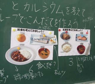 大田区管理栄養士の方をお招きし、丈夫な骨を作るための献立を考える学習を行いました。子供たちはカルシウムが豊富に取れる献立を一生懸命に考えていました。