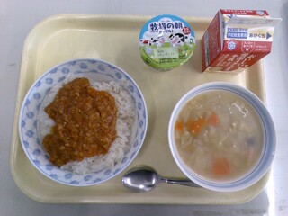 薄味ながらも、カレーの風味でごはんがよく進み、児童はもちろん、教職員からも好評でした。