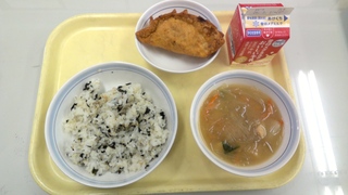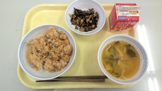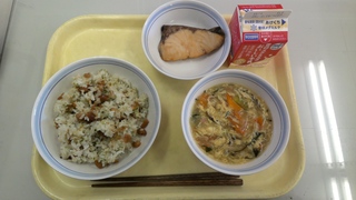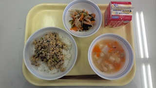 今日は節分ということで、揚げ大豆の混ぜごはんを提供しました。