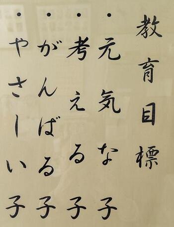 「元気な子」「考える子」「がんばる子」「やさしい子」の4つが教育目標です。