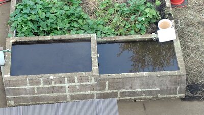 10月7日には、第一水田の角の大きなひび割れを水中ボンドで完全に修理し、壁面の下半分に防水テープを貼りました。