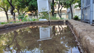 百葉箱が水面に映ります