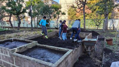 さて、先週で学校園委員会の6年生が育てていたサツマイモの収穫が終わりましたので、いよいよ残り半分となった第3水田の土出し作業を再開しました。5年生男子メンバーがほぼ中心となって労働をしております。目標としては、1月30日(金曜)に3つの田んぼすべてが復活し、春の田植えに向けて行動を始めると設定しています。