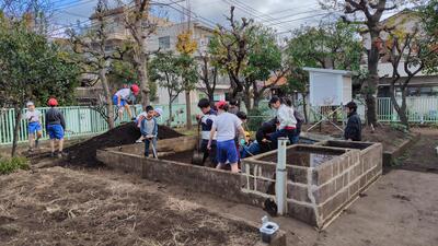 児童有志たちは、せっかくの休み時間なのに、1か月半もの間、毎日労働をしていました。この姿を見ていて、これは教科「おおたの未来づくり」遊びだなと思えたのです。労働も学習も遊び感覚だからなんだか楽しい。楽しいからもっとやりたくなる。土を掘っているといろいろな発見もあり、新しい課題も出てくる。どうしたらよいのか考えることも楽しい遊びである。