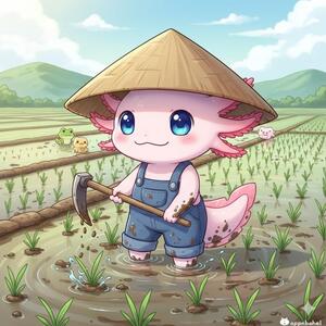 うっぴー君も田んぼ作業中