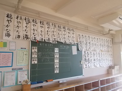 冬休みにみんなが取り組んだ書初めが、各学年の教室に掲示されています。始業式のあと、係のみなさんが展示してくれたものです。「志を遂げる」は、3年生の今学期の進路実現にむけてがんばっていこうという気持ちが表れているようです。2年生の教室には朝日差し込む教室で撮った「朝日が昇る」を紹介します。1年生も、「発展途上」と「庭の月影」の作品が並んでいます。これらの作品に見守られながら、今学期もがんばっていきましょう。