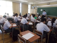 9月とはいえ、窓からは真夏を思わせる日差しが強烈に教室に入ってきます。冷房をかけていてもそんな外の様子は容易に感じられる中、みんなは1か月半ぶりの授業に取り組んでいます。先生の話を聞くのも、課題に取り組むのも久しぶりですが、授業を受ける様子からは、教室で授業をうけるうれしさが感じられます。2学期も頑張っていきましょう。